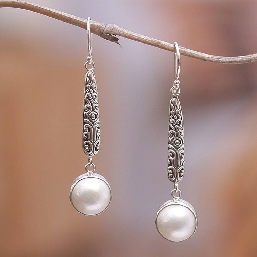 Balinese Sterling Silver Dangle Earrings with Grey Pearls 'Innocence and Balance' Item ID: 2671748428