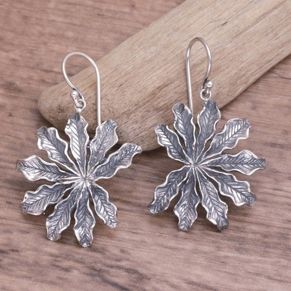 Balinese Sterling Silver Dangle Earrings with Palm Leaves 'Sugar Palm' Item ID: 2671748208