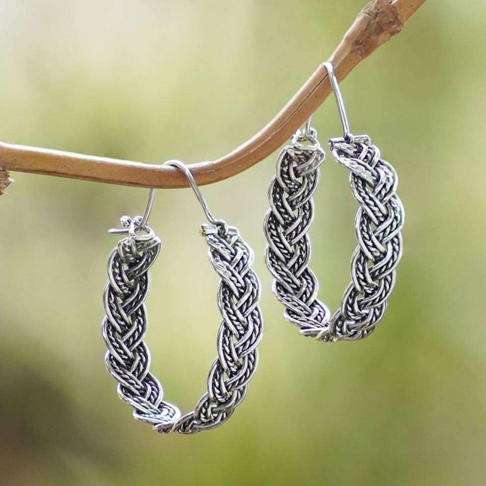 Balinese Sterling Silver Hoop Earrings with Braided Style 'Braided Flair' Item ID: 2671764818