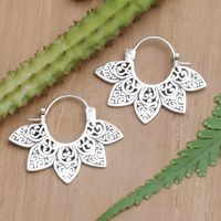 Balinese Sterling Silver Hoop Earrings with Floral Motif 'Balinese Flower' Item ID: 2671763054