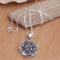 Balinese Sterling Silver Pendant Necklace with Floral Motifs 'Flowers for Canang' Item ID: 2671748207