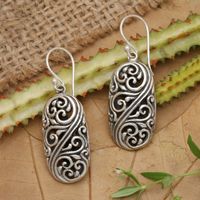 Balinese Sterling Silver Swirl Motif Dangle Earrings 'Forest of Vines' Item ID: 2671701358