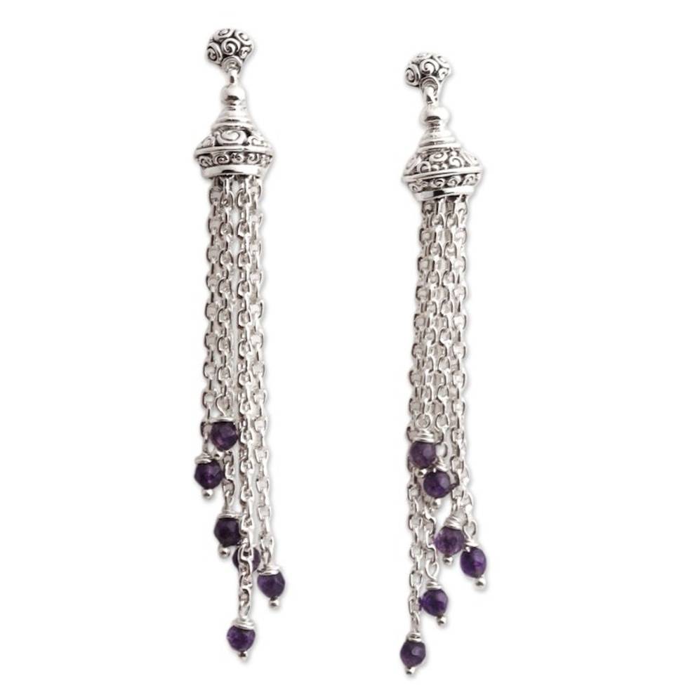Balinese Sterling Silver Waterfall Earrings with Amethysts 'Raining Violets' Item ID: 2671745375