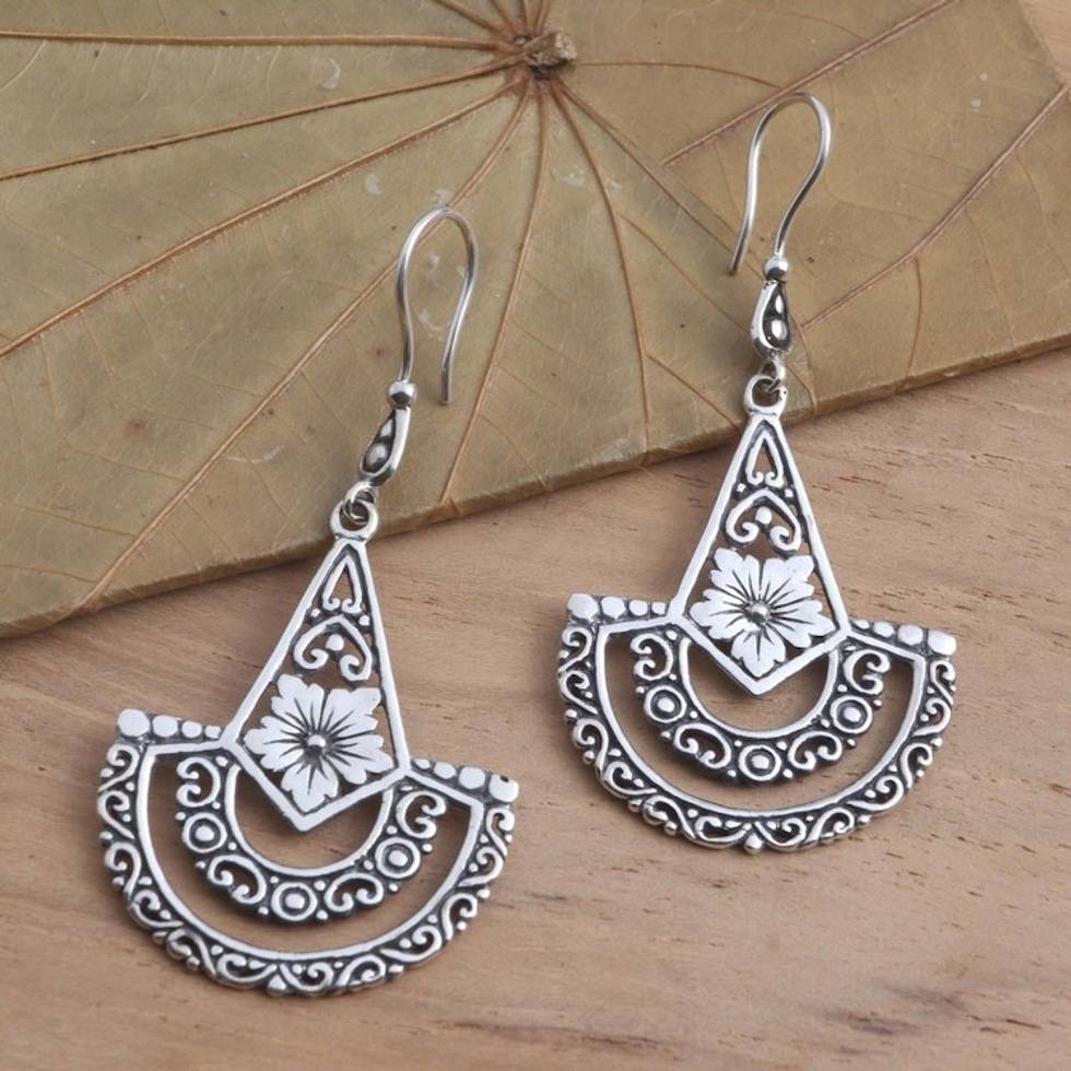 Balinese Style Sterling Silver Dangle Earrings 'Sacred Blossom' Item ID: 2671744727