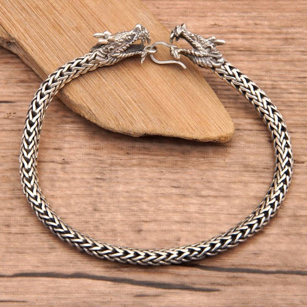 Balinese Traditional Basuki Sterling Silver Chain Bracelet 'Basuki Couple' Item ID: 2671764963