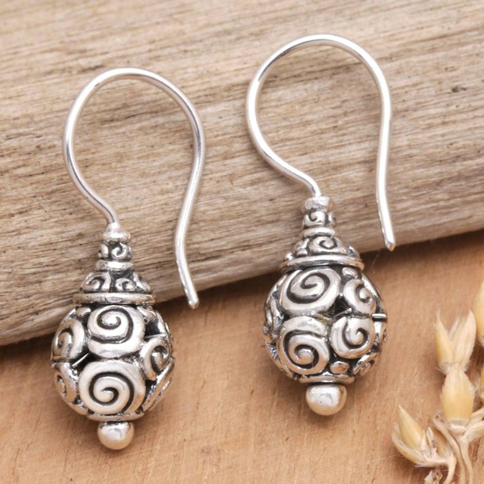 Balinese Traditional Sterling Silver Dangle Earrings 'Bali's Grandeur' Item ID: 2669921864