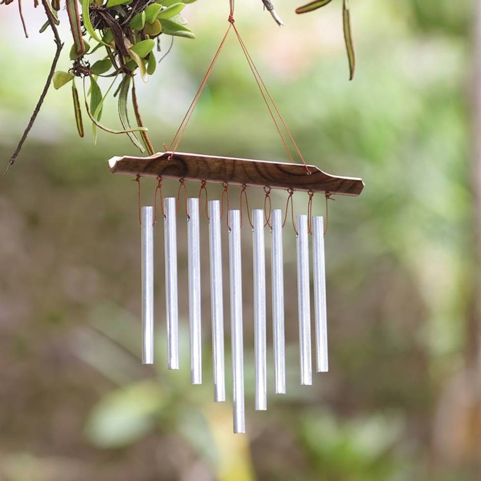 This simple but carefully crafted wind chime is made with aluminum pipes beneath rods of bamboo. It makes a very attractive and soothing addition on my outdoor patio. I have very fond memories of a trip l took to Bali long ago, and I'm so pleased to hear the gentle sound created by the chime.