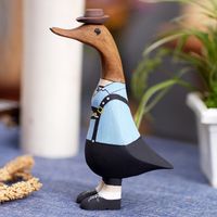 Bamboo and Teak Wood Duck Sculpture in Alpine Garments 'Mister Duck in the Alps' Item ID: 2671669722