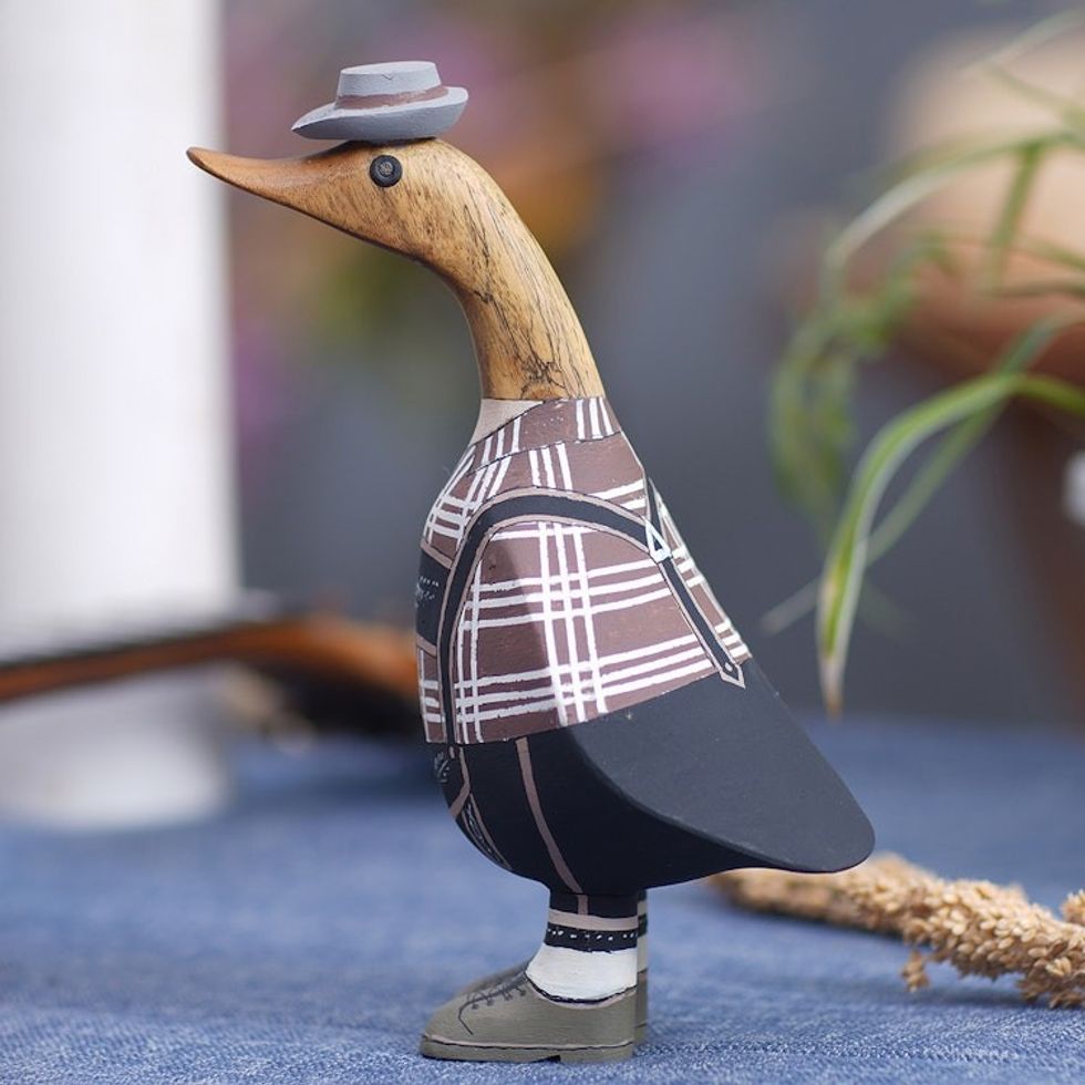 Bamboo and Teak Wood Duck Sculpture in German Garments 'Mister Duck in Germany' Item ID: 2671747890