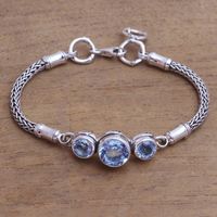 Bamboo Motif Blue Topaz Pendant Bracelet from Bali 'Mystic Bamboo' Item ID: 2671736652