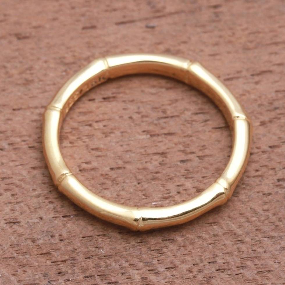 Bamboo Motif Silver Band Ring Bathed in 18k Gold 'Bamboo Regeneration' Item ID: 2671667551