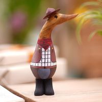 Bamboo Root and Teak Hand-Painted Cowboy Duck Figurine 'Cowboy Duck' Item ID: 2671748450