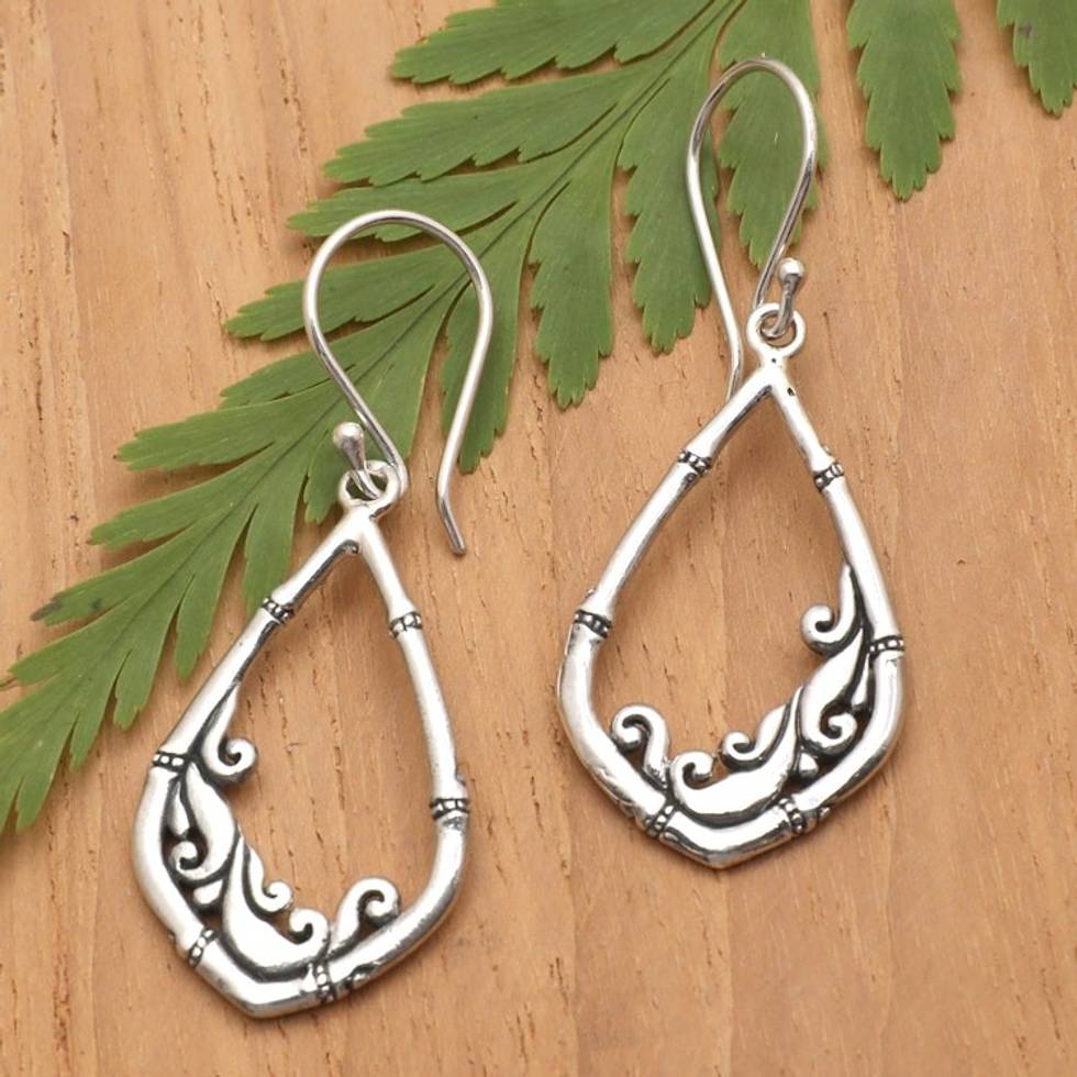 Bamboo-Themed Traditional Sterling Silver Dangle Earrings 'Majestic Bamboo' Item ID: 2671762964