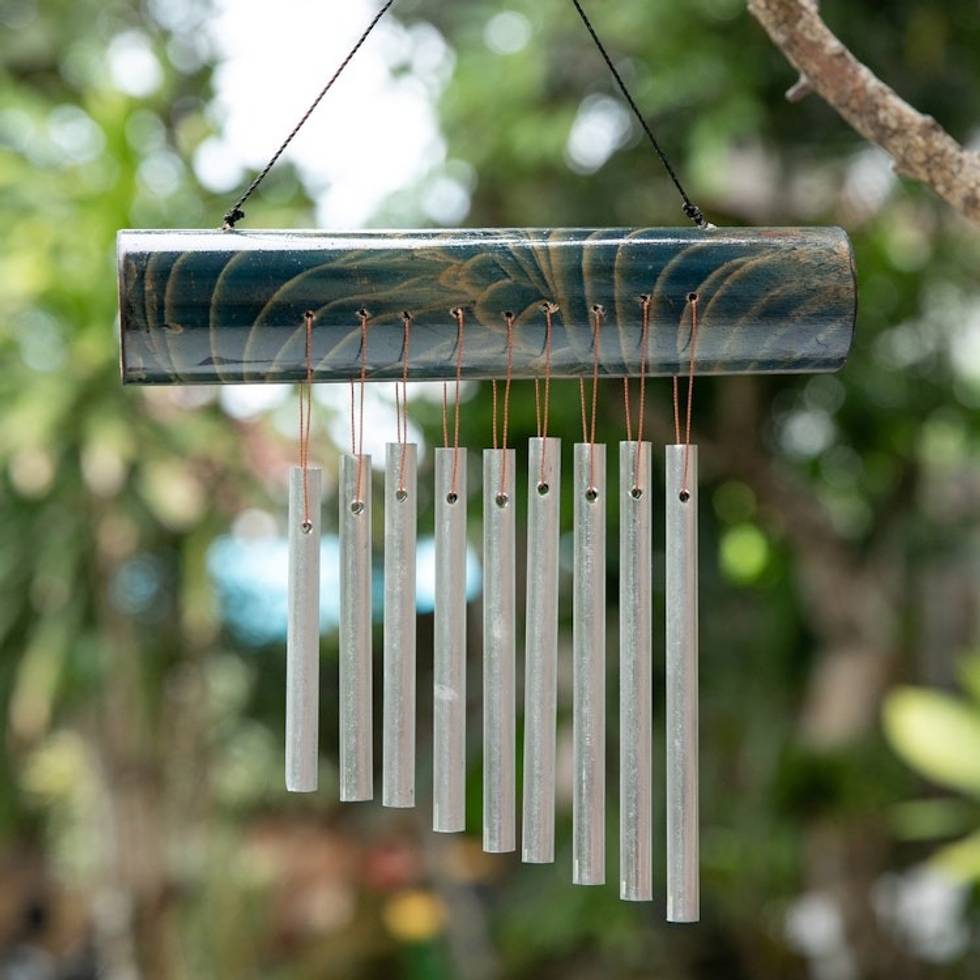 Bamboo Wind Chime in Blue with Nine Aluminum Pipes from Bali 'Early Morning Song in Blue' Item ID: 2671671414