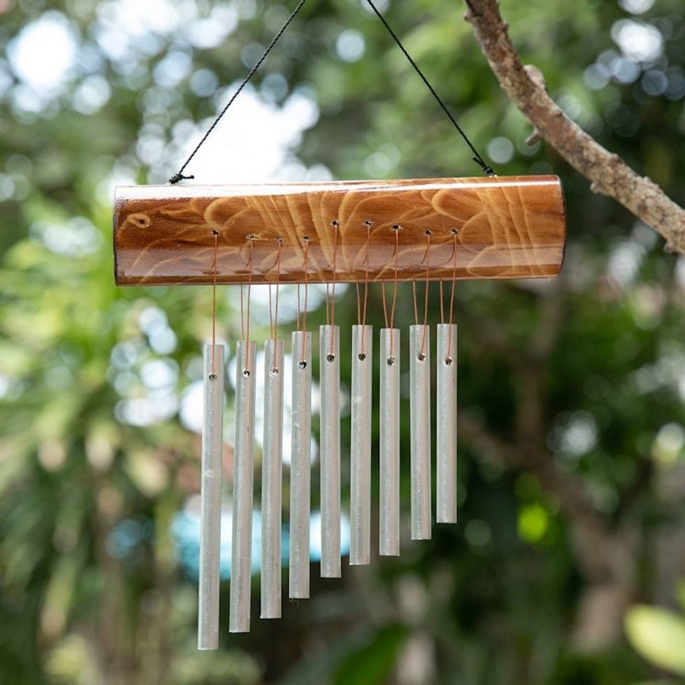 Bamboo Wind Chime in Brown with Aluminum Pipes from Bali 'Early Morning Song' Item ID: 2671765458