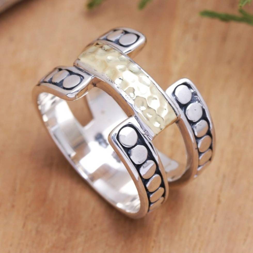Band Ring with A Hammered Finish 18k Gold-Plated Accent 'Armadillo Glam' Item ID: 2670122340
