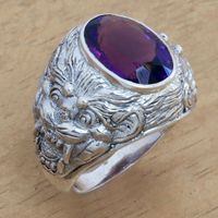 Barong Theme Men's Sterling Silver and Amethyst Ring 'Benevolent Barong' Item ID: 2670122138