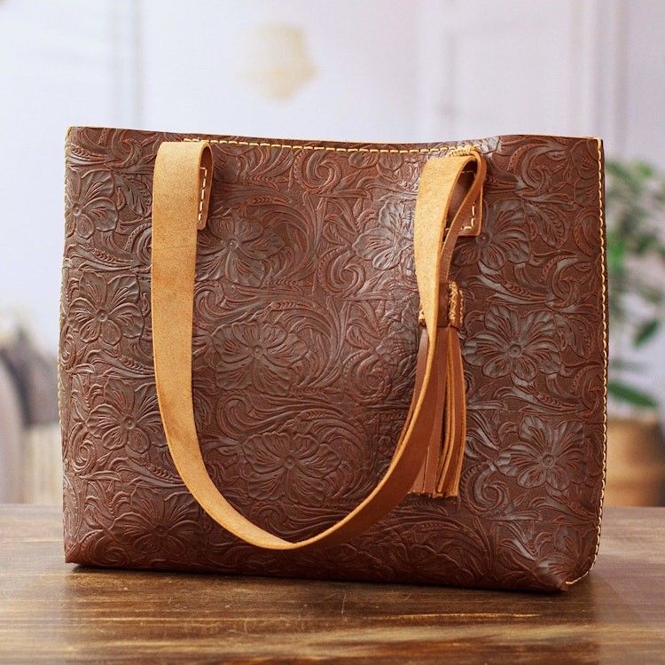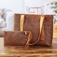 Baroque Floral Chocolate Leather Tote Bag and Wristlet 'Classic Chocolate' Item ID: 2671807629