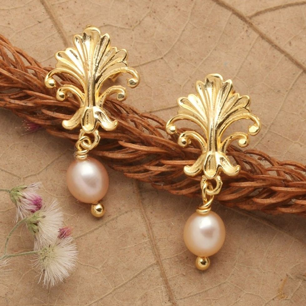 Baroque-Inspired 18k Gold-Plated Peach Pearl Dangle Earrings 'Romantic Tree' Item ID: 2671764760