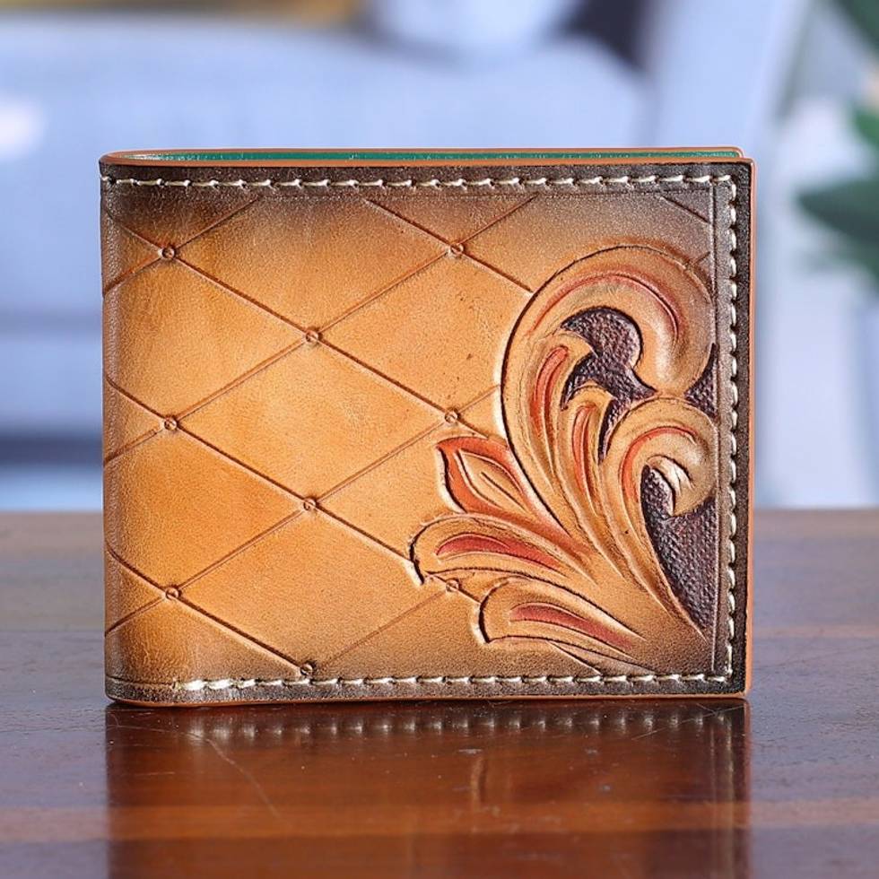 Baroque-Inspired Men's Copper and Mahogany Leather Wallet 'Noble Era' Item ID: 2671781414