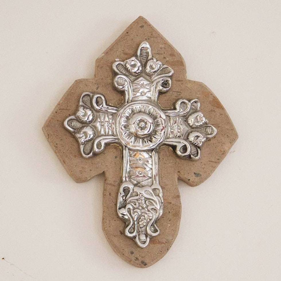 Baroque-Inspired Pewter and Reclaimed Stone Wall Cross 'Baroque Faith' Item ID: 2676646726