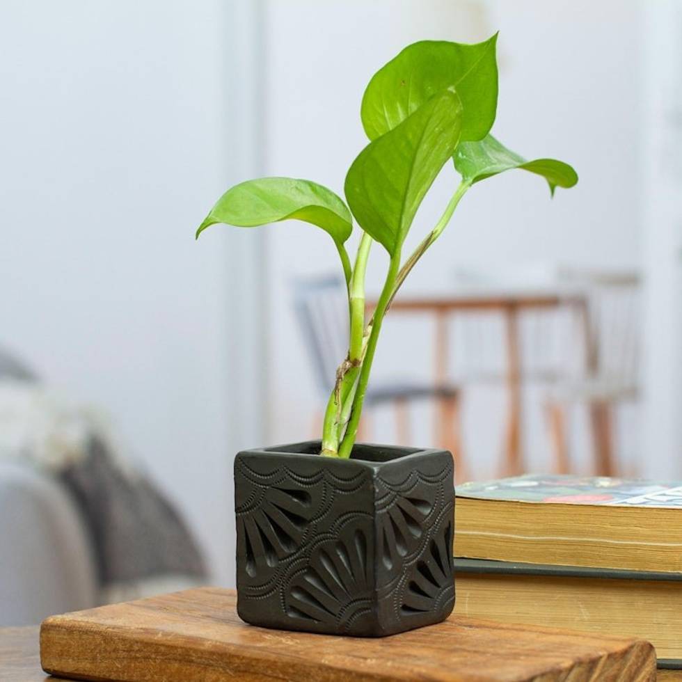 Barro Negro Black Ceramic Mini Flower Pot Handmade in Mexico 'Square Peacock Too' Item ID: 2669927054
