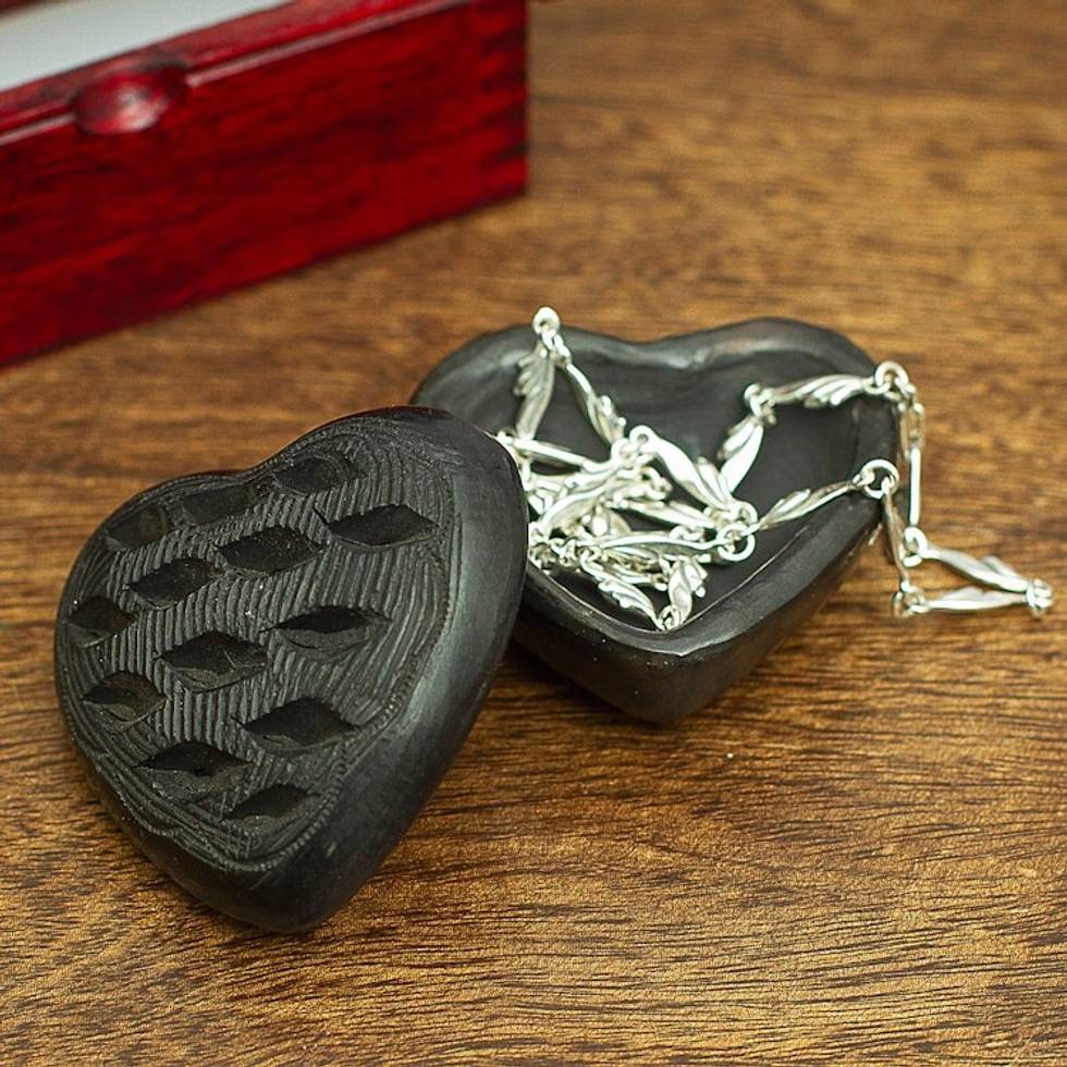 Barro Negro Black Ceramic Mini Jewelry Box Crafted in Mexico 'Heart Flakes' Item ID: 2669932453