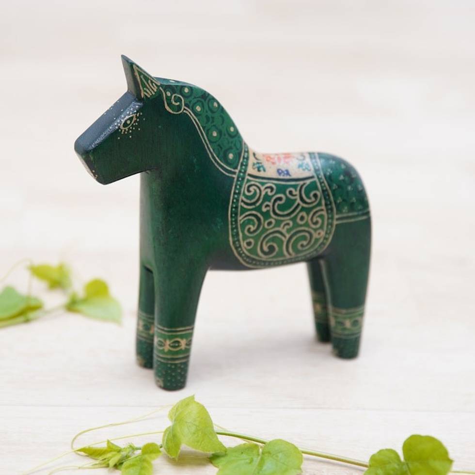 Batik Classic Horse-Shaped Green Pule Wood Figurine 'Green Dala Horse' Item ID: 2671671214