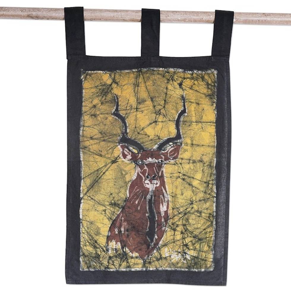 Batik Cotton Kudu Wall Hanging Handcrafted in Ghana 'Greater Kudu I' Item ID: 2671805337