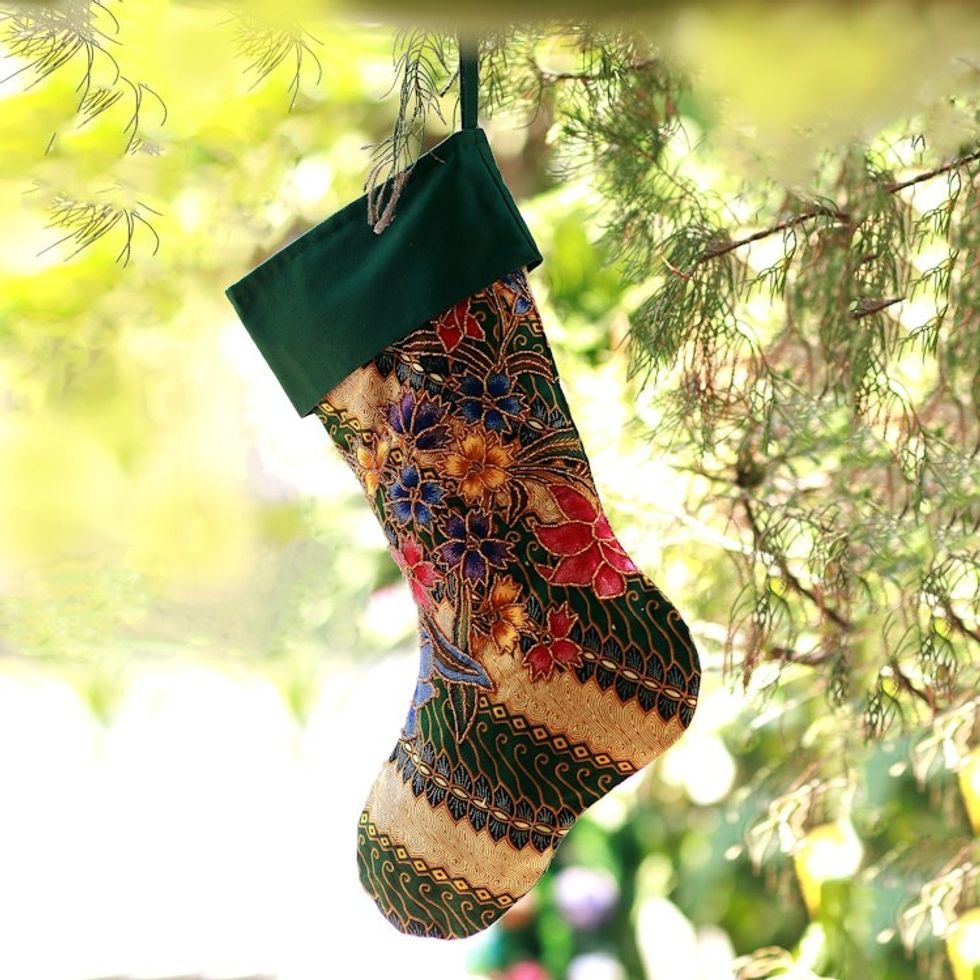 Batik Cotton Stocking in Midnight from Bali 'Parang Holiday' Item ID: 2669914038