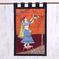 Batik Cotton Wall Hanging of Agricultural Woman from India 'Rural Chores' Item ID: 2671791429