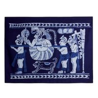 Batik Cotton Wall Hanging with Mayan Motifs from El Salvador 'Ah Ppolom Merchant' Item ID: 2671777440