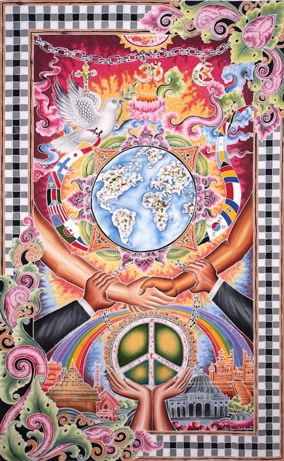 Batik Expressionist Painting with Vibrant Multicolor Palette 'Peace in the World' Item ID: 2669889539
