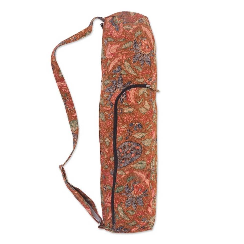 Batik Flowers on Cotton Yoga Mat Bag Artisan Crafted 'Tiga Negeri' Item ID: 2669916859