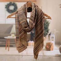 Batik Handwoven Striped Fringed Silk Scarf in Earthy Hues 'Bold Ochre' Item ID: 2676653012