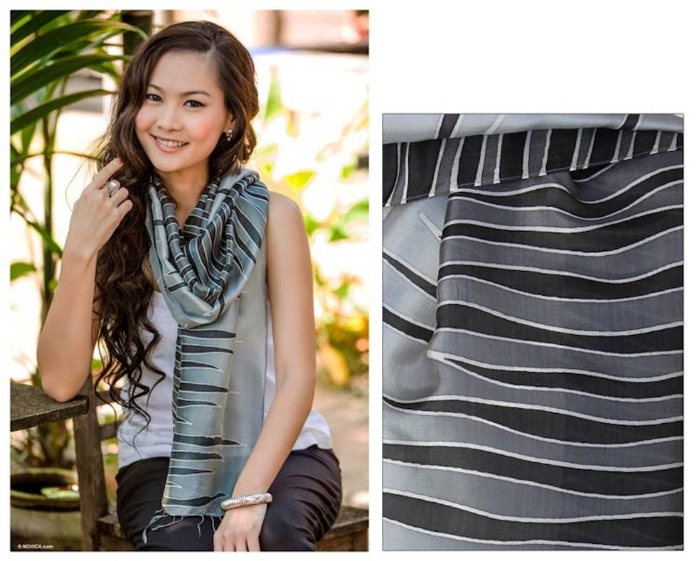 Batik Patterned Scarf 'Gray Embrace' Item ID: 2671803012