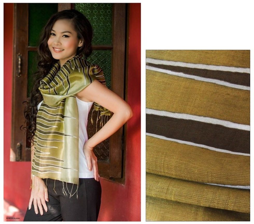 Batik Patterned Scarf 'Olive Embrace' Item ID: 2671802924