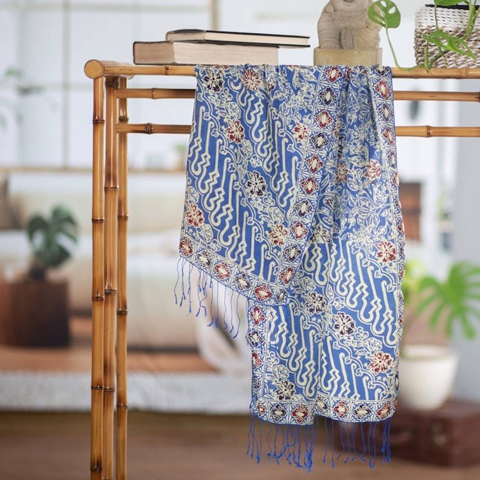 Batik Silk Shawl with Indigo Floral Motifs from Bali 'Alluring Lily in Indigo' Item ID: 2669891916