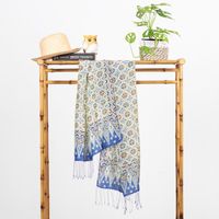 This absolutely gorgeous shawl is made from some of the finest silk I've ever had the privilege to touch. It is so soft and light, yet sturdy and the batikking is impeccable! I love the black version, as it shows up the print so beautifully! It almost has a vintage Arts and Crafts feel to the pattern. Nice enough to display in one's home - the bedroom perhaps...? I have since thought of getting another color either for myself or a very good friend or family member...well worth it.