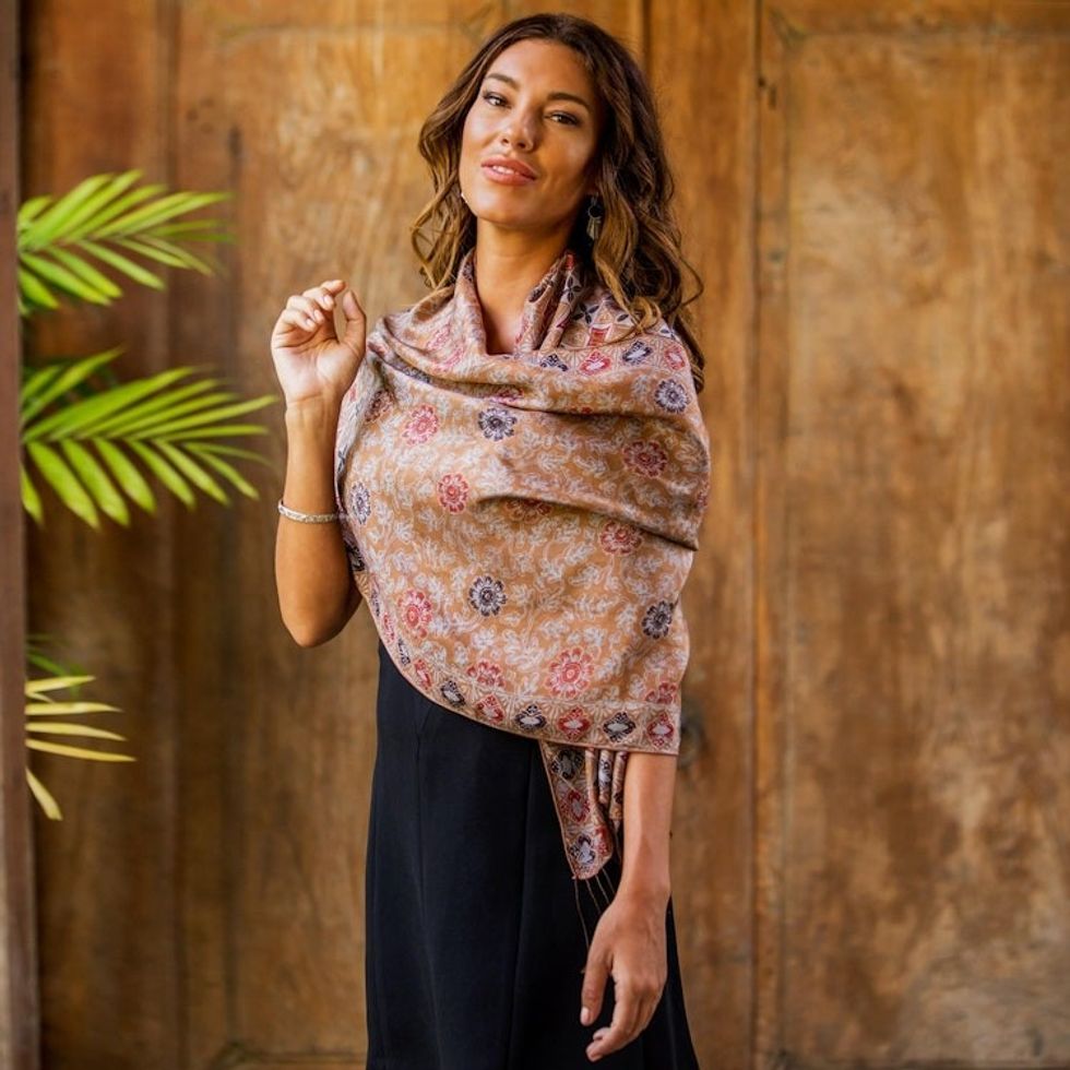 Batik Silk Shawl with Spice Floral Motifs from Bali 'Truntum Forest in Spice' Item ID: 2671732927