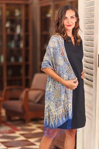 Batik Silk Shawl with Traditional Motifs in Iris from Bali 'Iris Sekar Jagad' Item ID: 2671734443