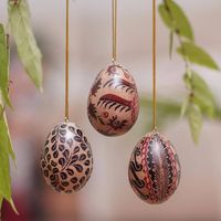 Batik Wood Egg Ornaments Set of 3 from Indonesia 'Parang Eggs' Item ID: 2676663196