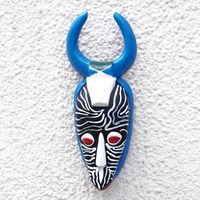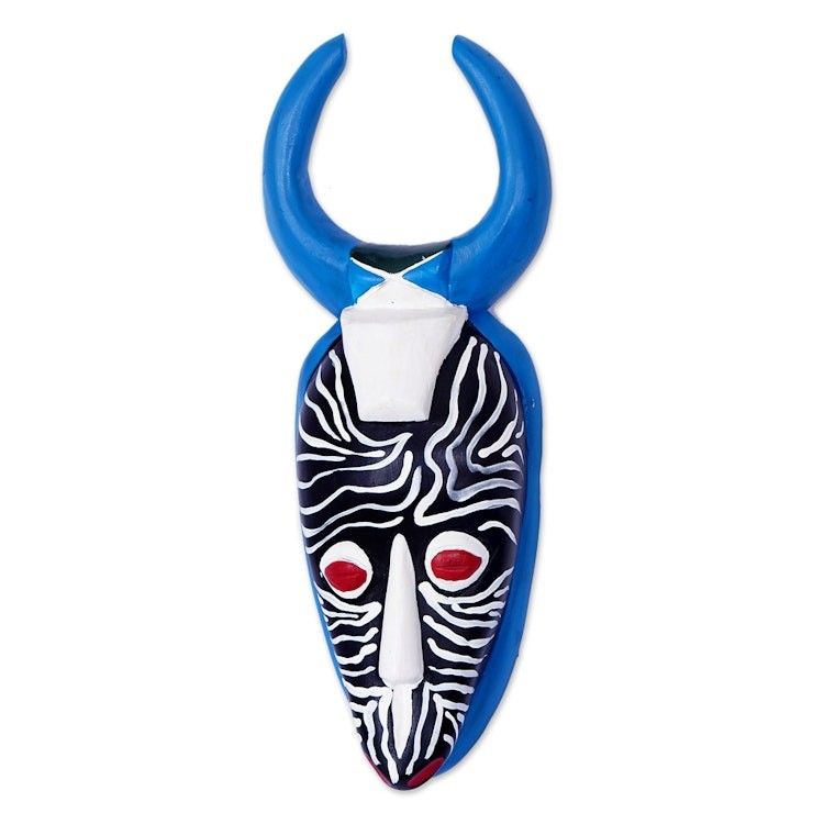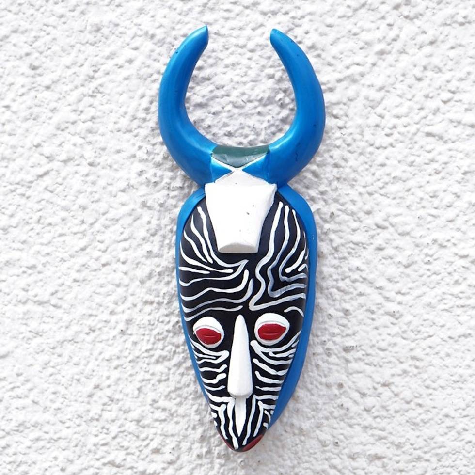 Baule Warrior from Cote d'Ivoire Hand-Painted Wood Mask 'Horn Warrior' Item ID: 2671805491
