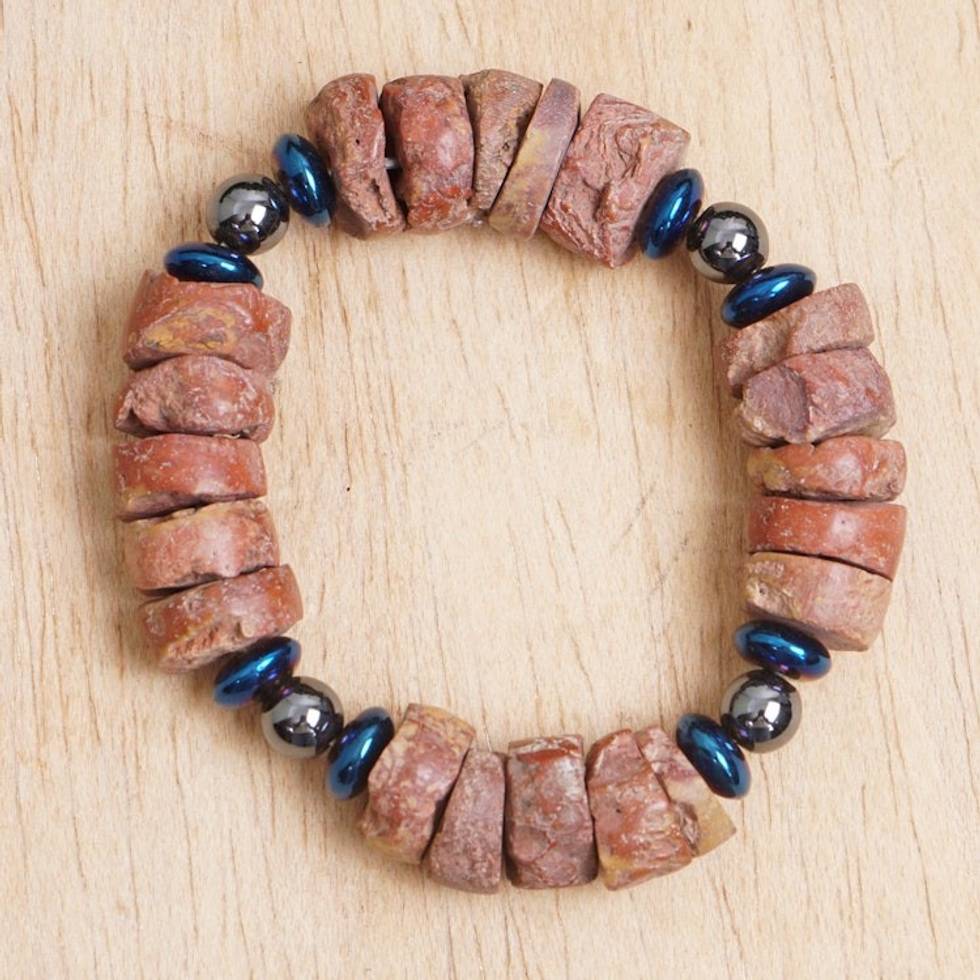 Bauxite and Recycled Glass Beaded Stretch Bracelet 'Vibrant Earth' Item ID: 2671804167