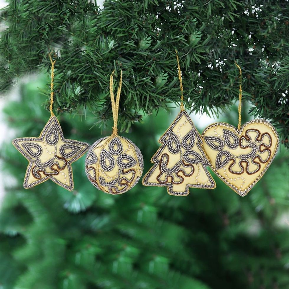 Beaded and Embroidered Christmas Ornaments Set of 4 'Festive Celebrations' Item ID: 2671789973