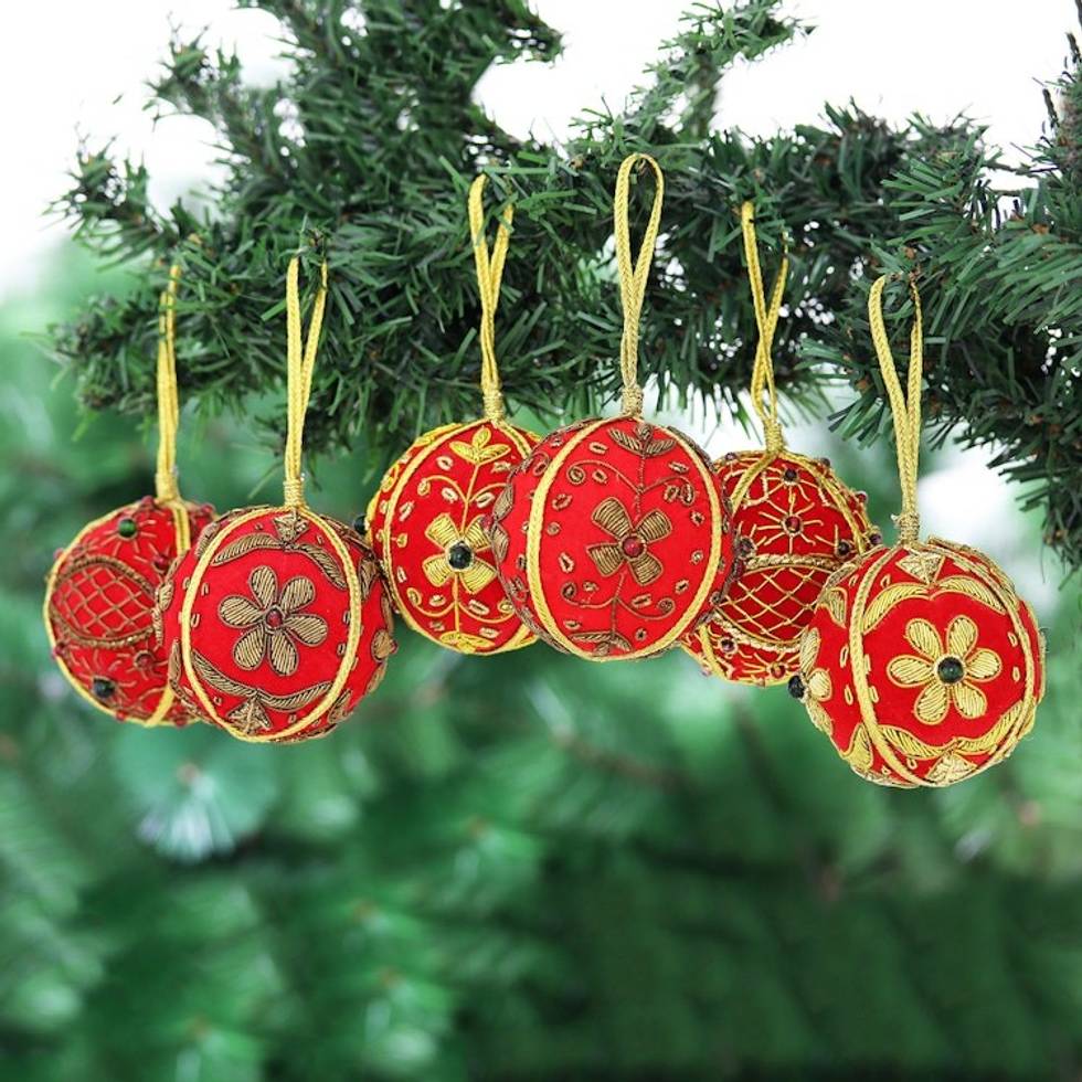 Beaded and Embroidered Velvet Ornaments Set of 6 'Velvet Holiday' Item ID: 2671790039