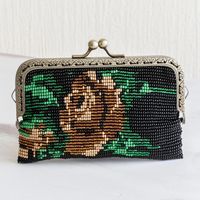 Beaded Black Clutch Handbag with Golden Rose Motif 'A Golden Rose' Item ID: 2671776827