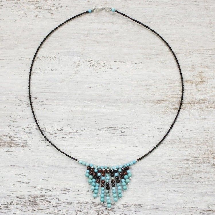 Beaded Blue and Brown Gemstone Waterfall Necklace 'Waterfall Bliss' Item ID: 2671801515