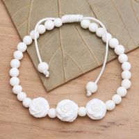 Beaded Bracelet with 3 Hand Carved Roses 'Ivory Roses' Item ID: 2671744979