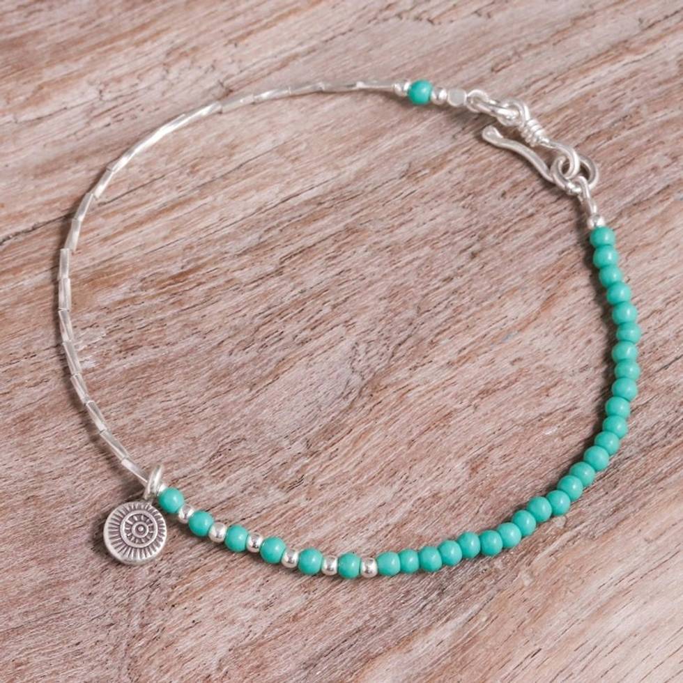 Beaded Bracelet with Hill Silver Charm and Howlite Stones 'Meditation Charm' Item ID: 2671797375